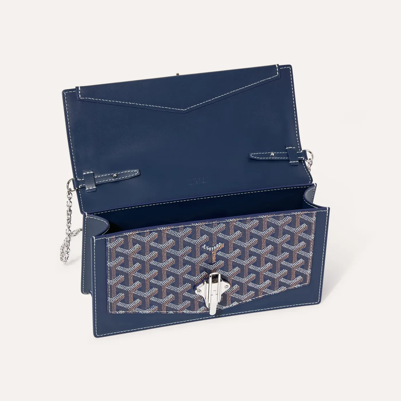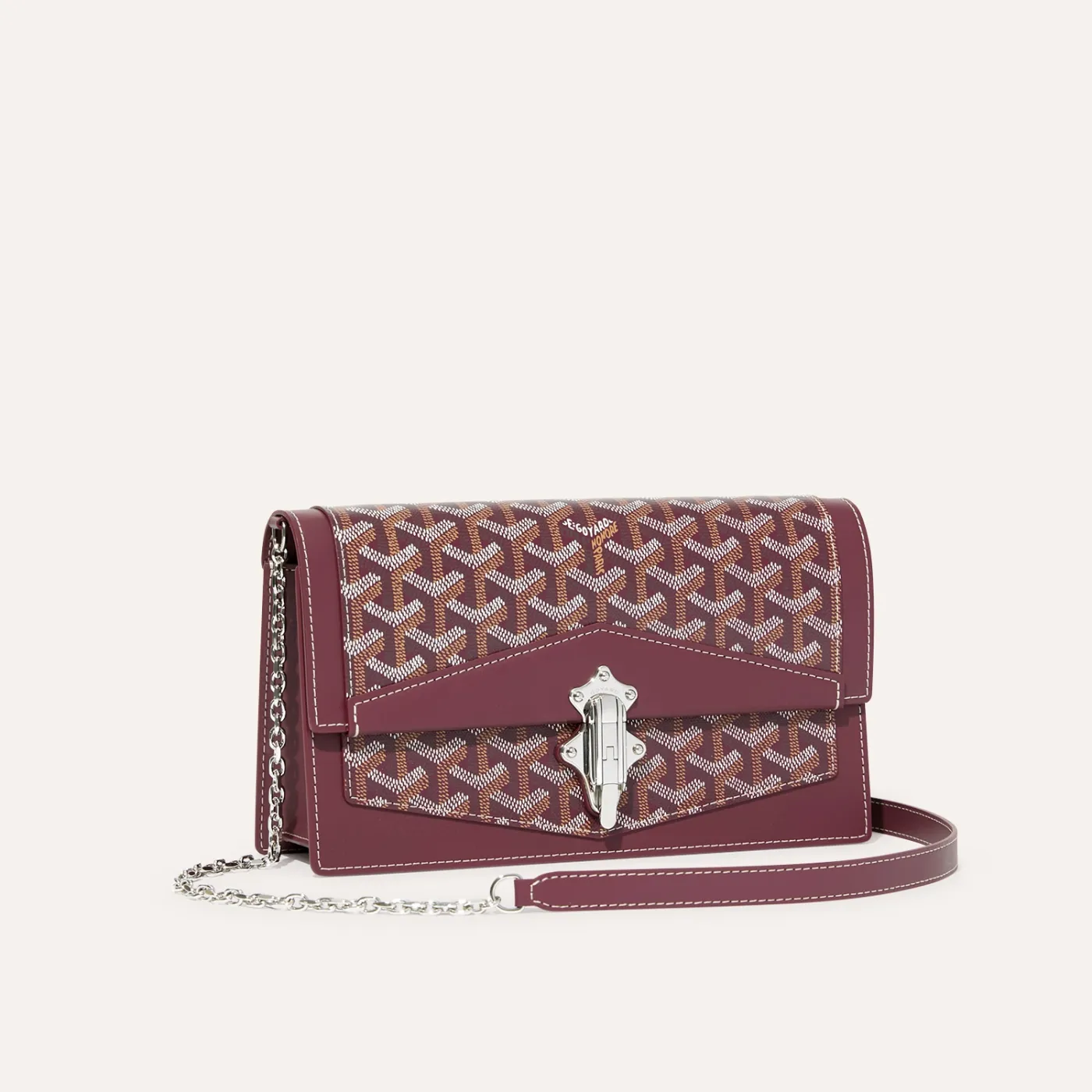 At once elegant and practical, the Duchess Marie-Caroline bag can be worn around the shoulder, cross-body style or carried by hand thanks to its removable chain strap. Its closing system is secured with a clasp, a nod to the historical trunk-making know-how of Maison Goyard. The Duchess Marie-Caroline bag is ideally complemented by the Insert Louise, as both share the same edgy look.