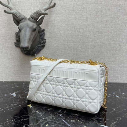 The new Dior Caro handbag is decorated with Cannage pattern stitching on gray calfskin, showing a unique stitch texture. The flap of this soft bag is equipped with a retro gold-toned metal rotating “CD” lock. The design is inspired by the unique closure of the Christian Dior perfume bottle. The detachable iconic “CD” link shoulder strap can be replaced with a wide embroidered shoulder strap, allowing you to create an elegant and fashionable look regardless of occasion, morning or evening.