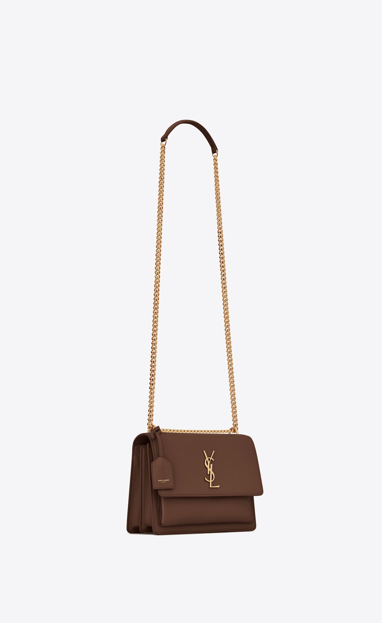 LEATHER-LINED FLAP BAG WITH THE CASSANDRE AND DETACHABLE LEATHER CHARM.