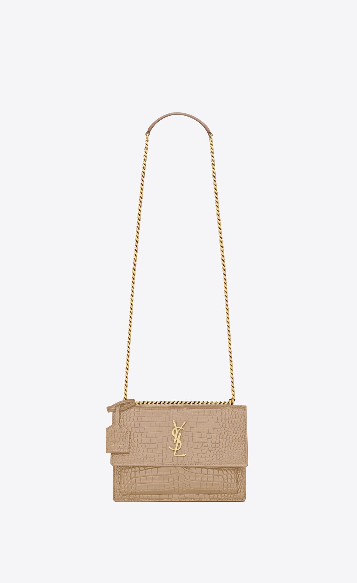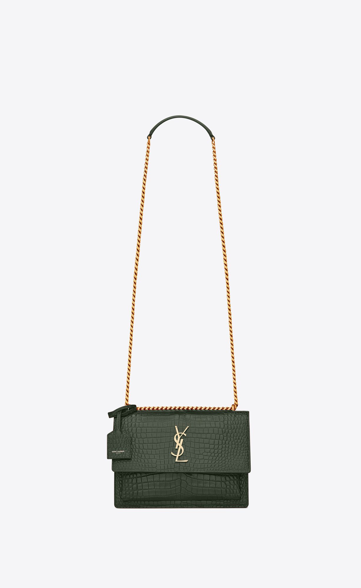 YSL SUNSET MEDIUM IN CROCODILE-EMBOSSED LEATHER 442906