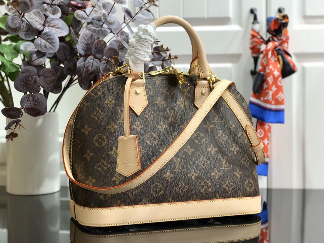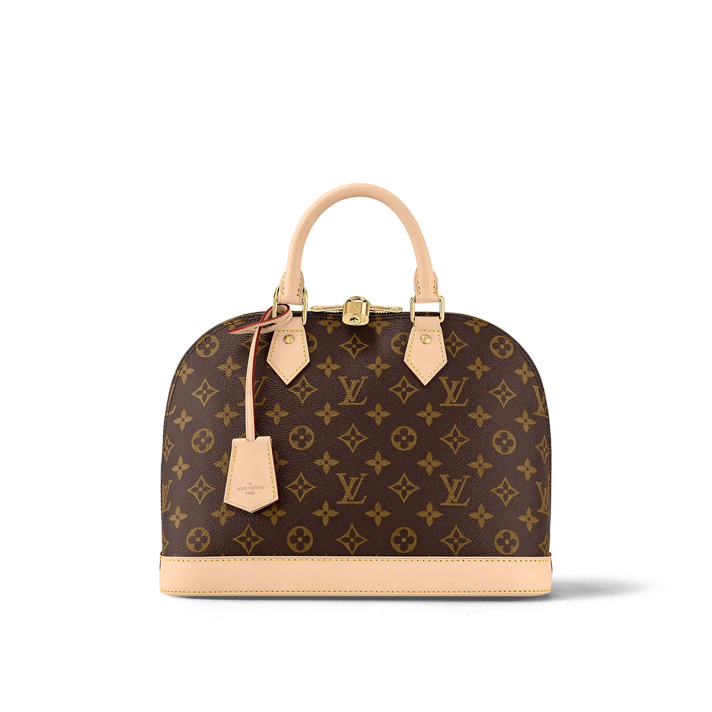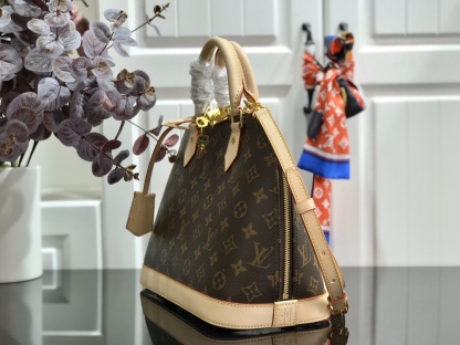 A timeless House icon, the Alma PM handbag is ideal for every day. Its structured lines recall the Art Deco original, introduced in 1934 and named for the Alma Bridge in Paris. Crafted from Monogram canvas, with hand-stitched Toron handles, natural cowhide trim and high-shine golden hardware, this signature model always looks elegant, carried by hand or on the elbow.