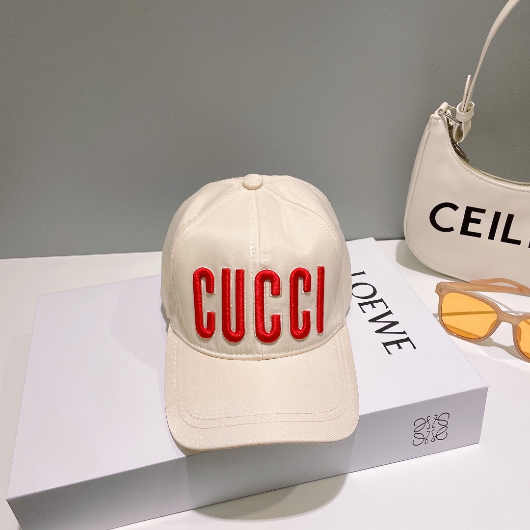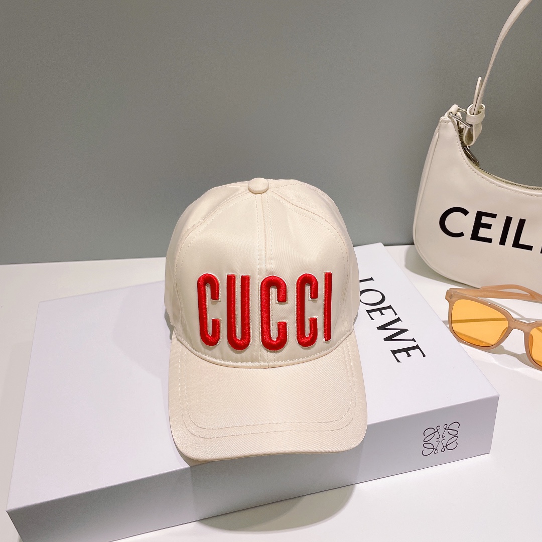 This black cotton twill cap features a bold red embroidered patch featuring the brand's name on the front. The name Gucci continues to enrich everyday pieces with a unique signature style.