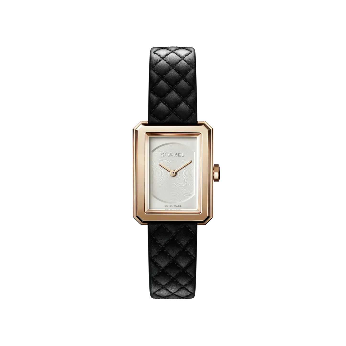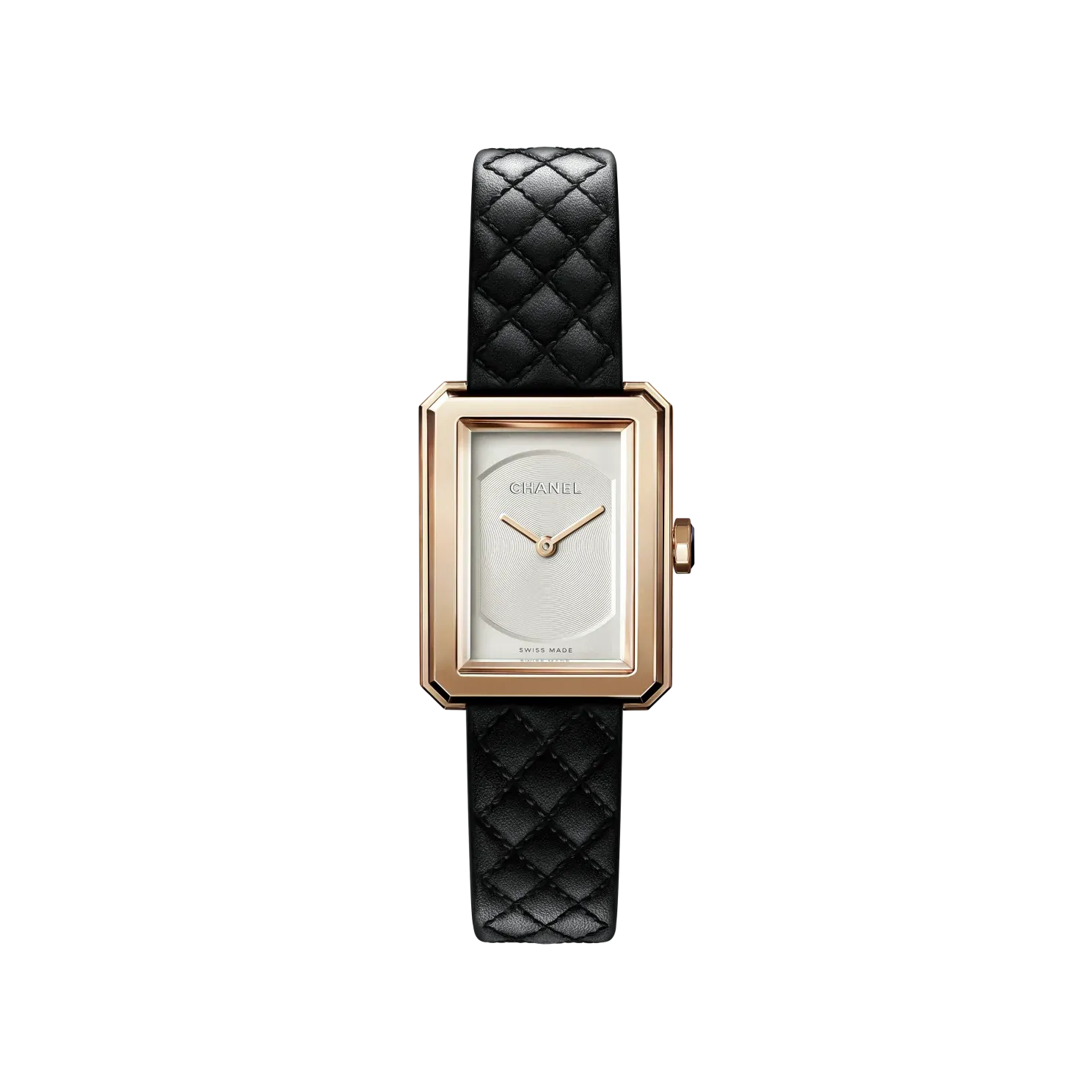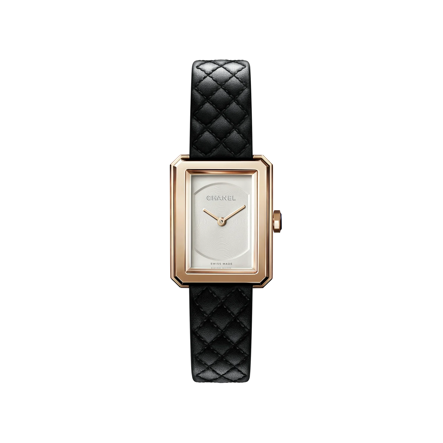 Black quilted pattern calfskin strap with interchangeable system and 18K BEIGE GOLD ardillon buckle, second strap included