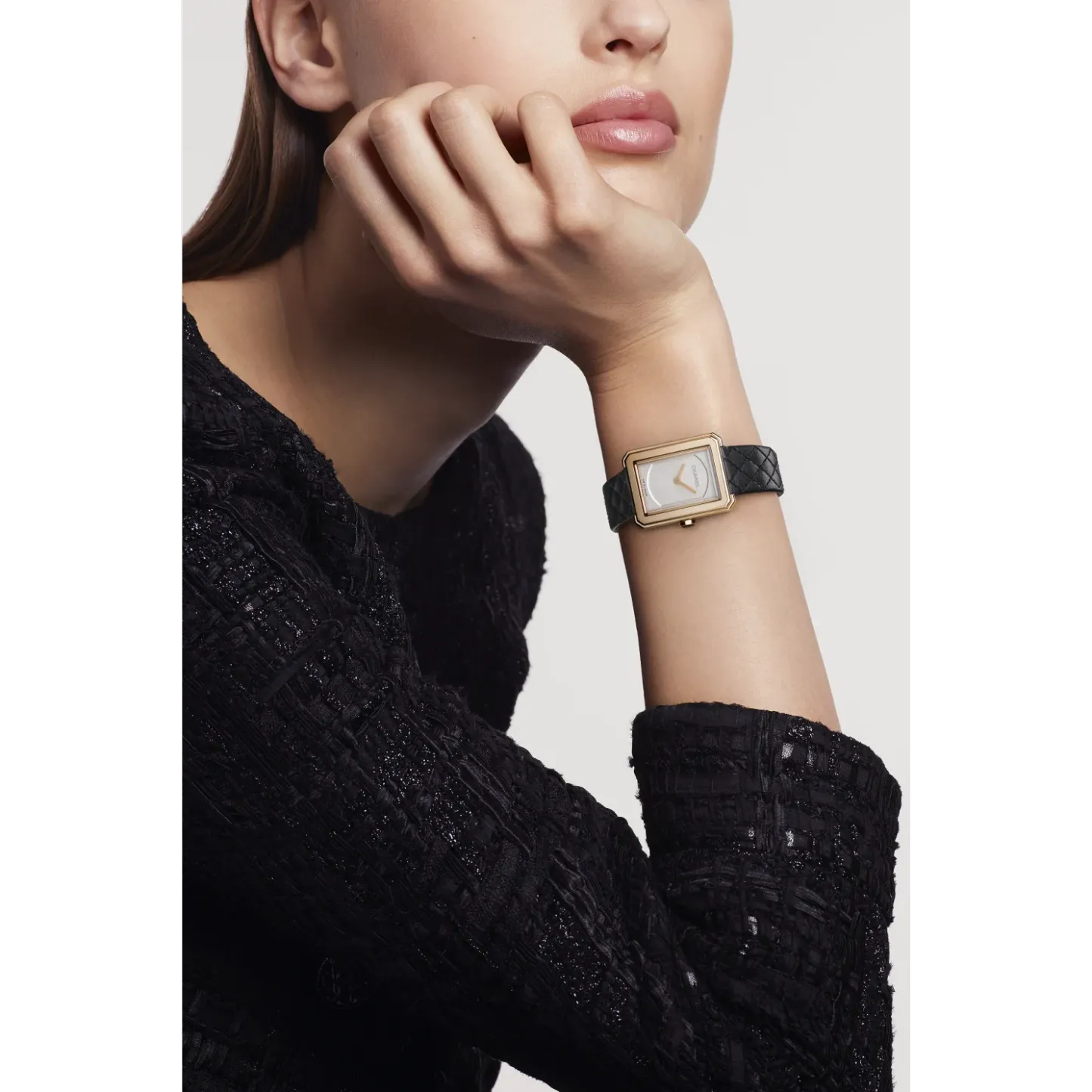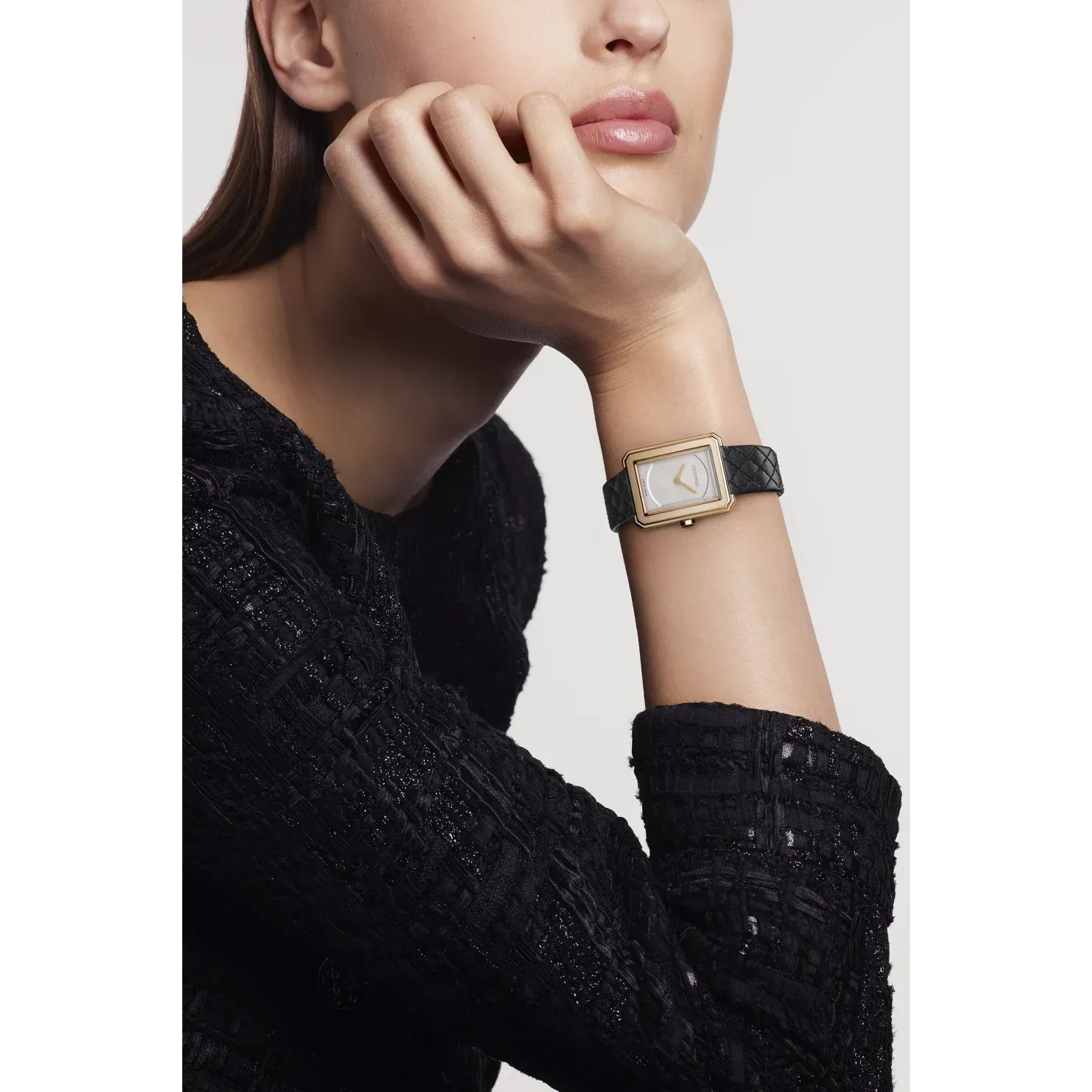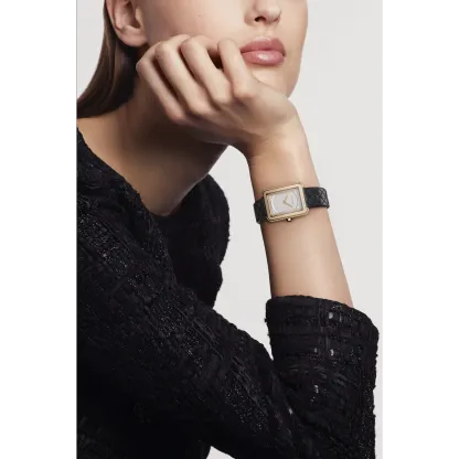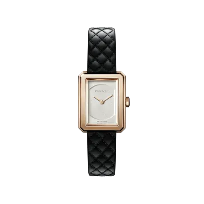 Black quilted pattern calfskin strap with interchangeable system and 18K BEIGE GOLD ardillon buckle, second strap included