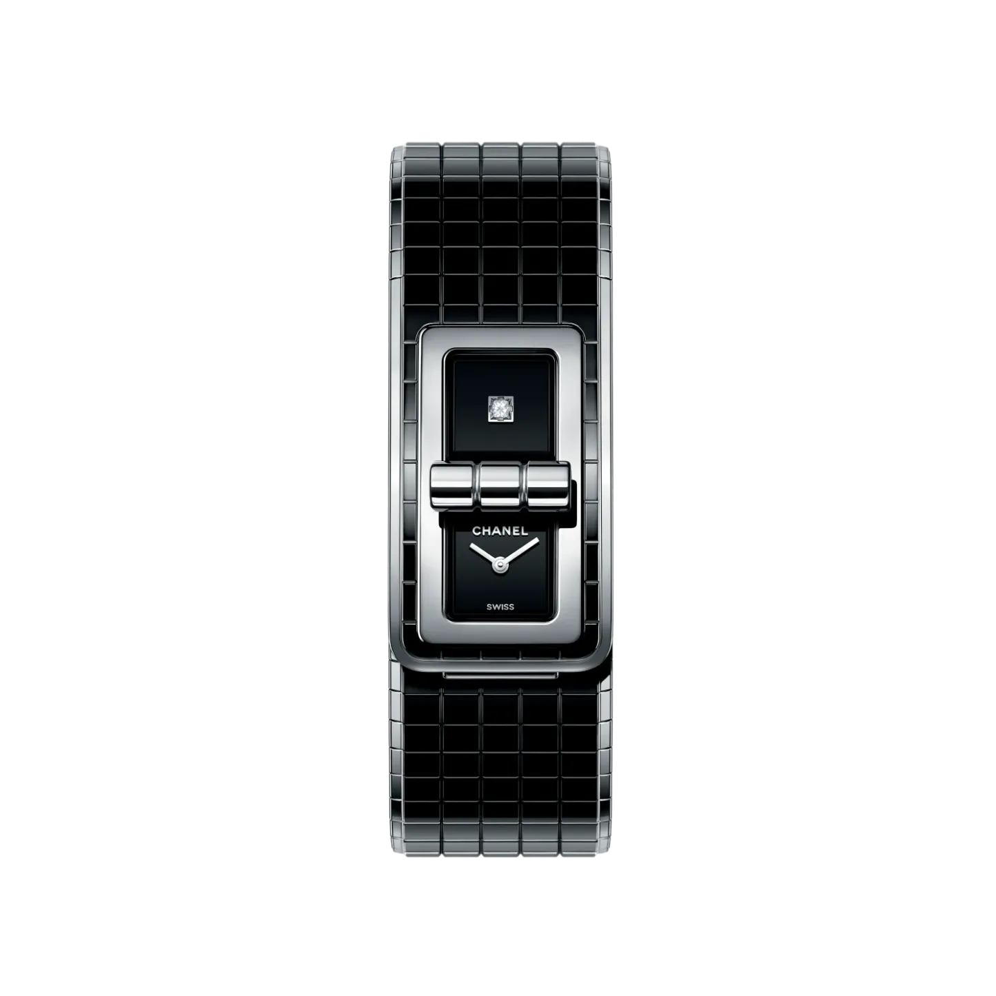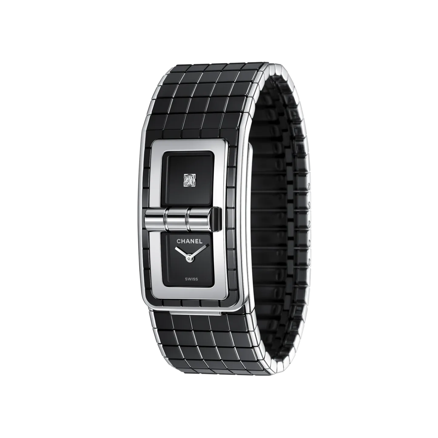 Black-lacquered dials, one set with a princess-cut diamond (~0.05 carat)