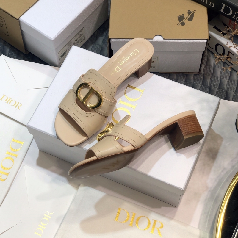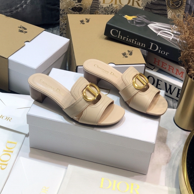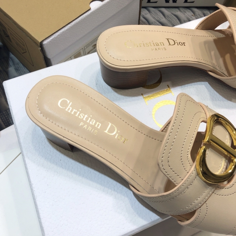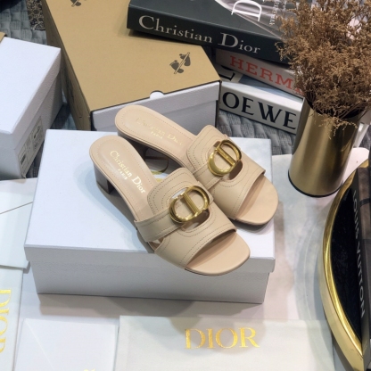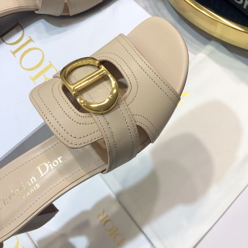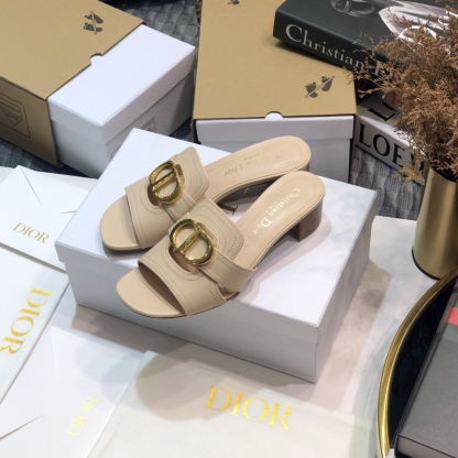 Dior Beige Leather Montaigne Flat Slides
