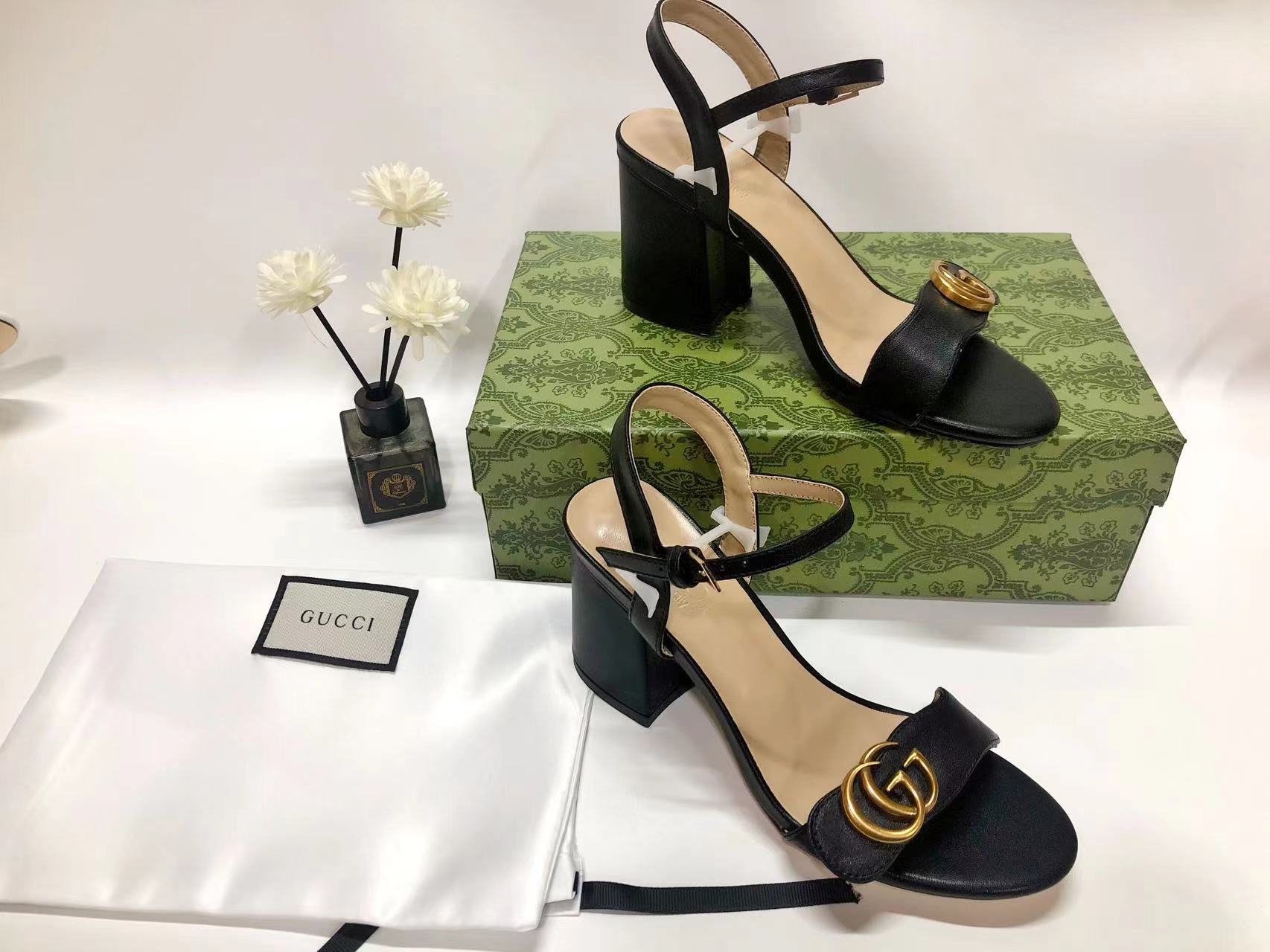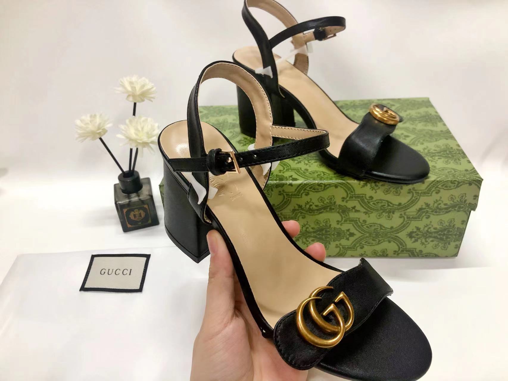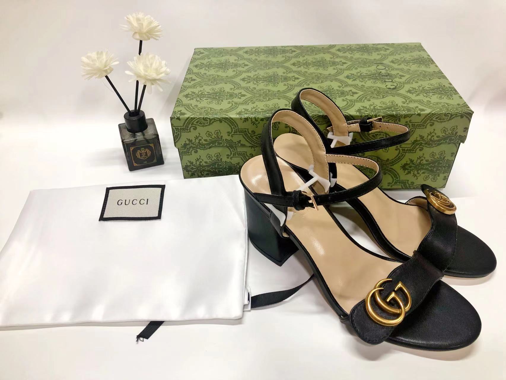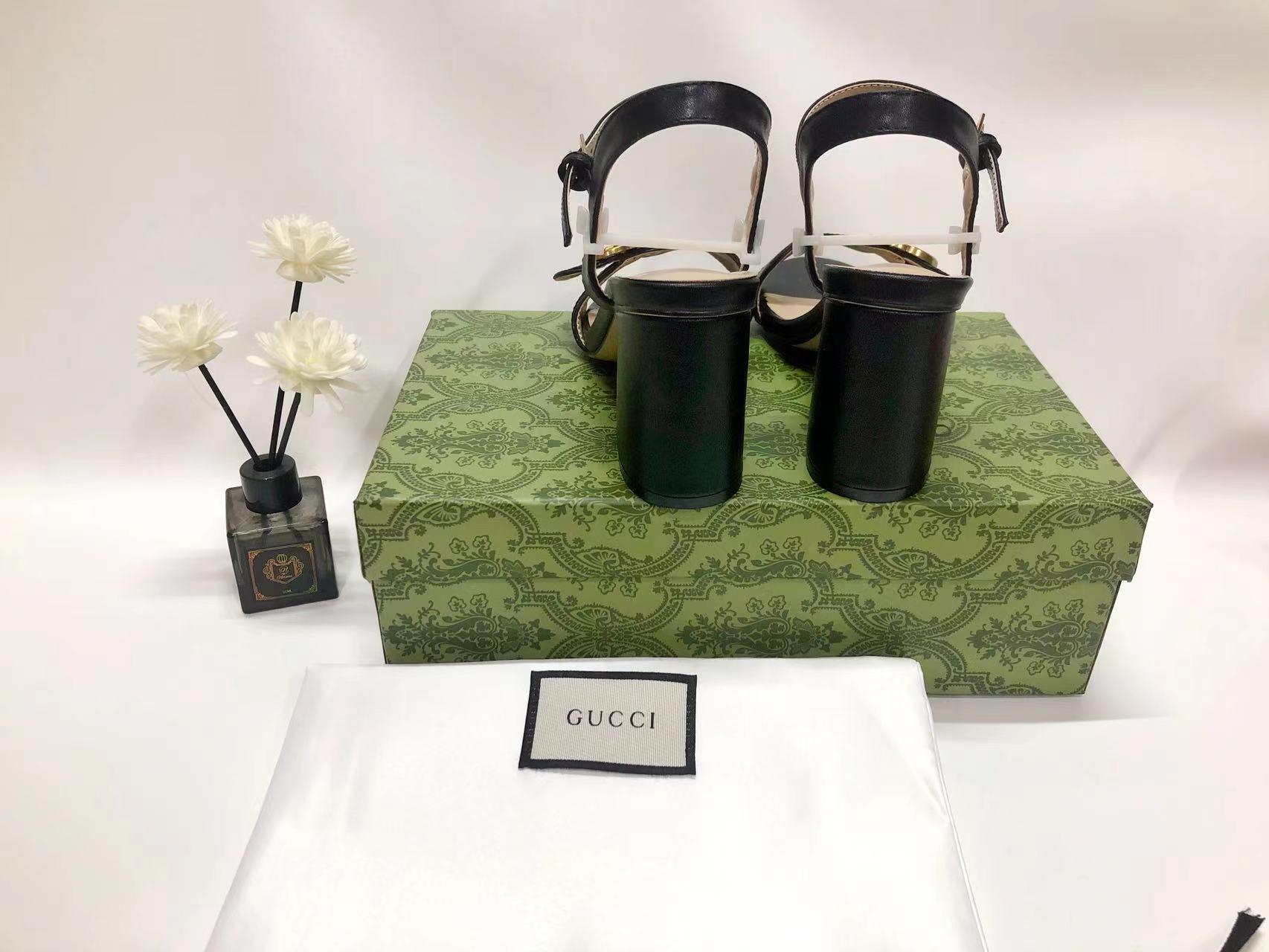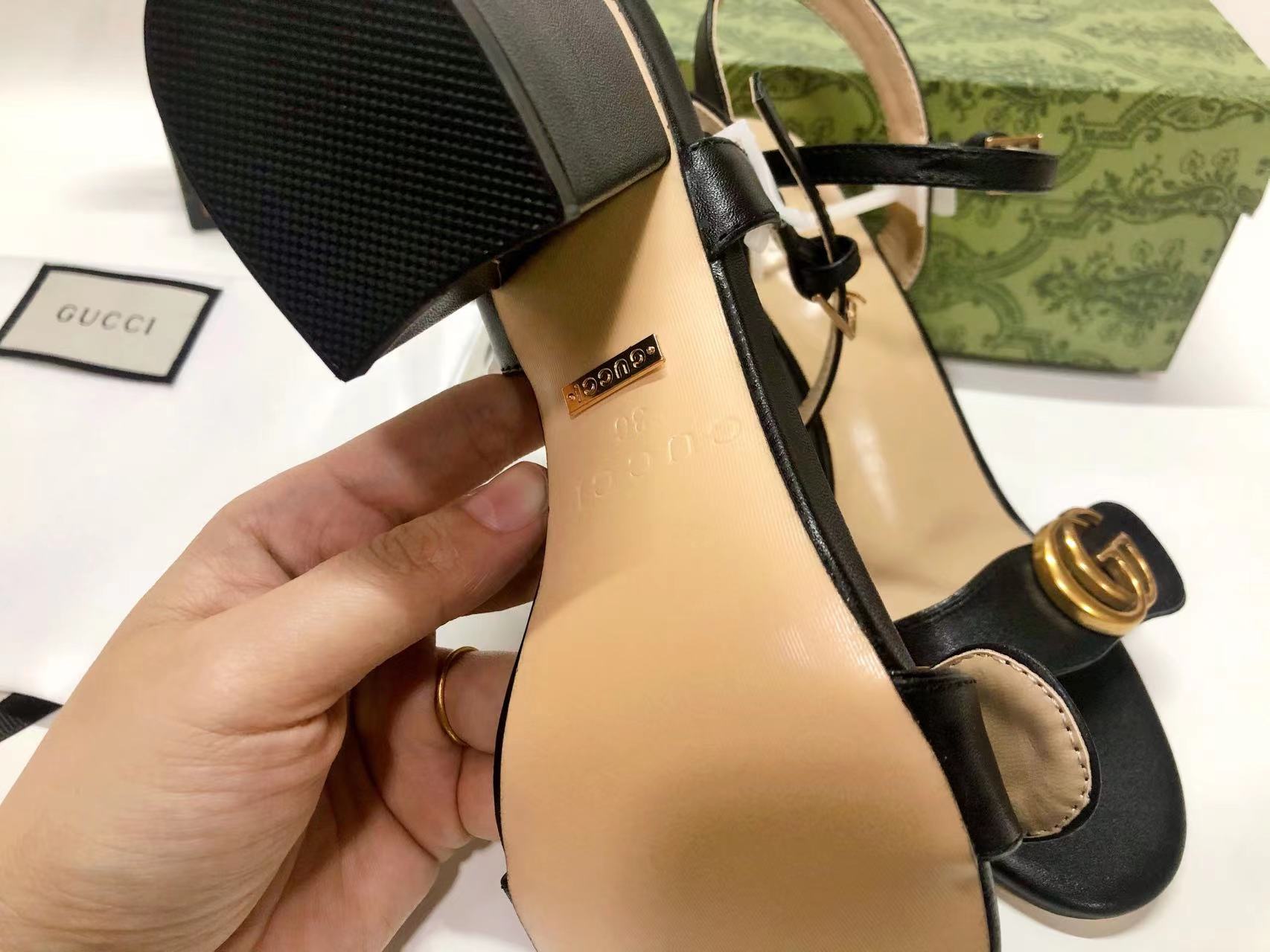 GUCCI - GG MARMONT black leather mid-heel sandals -