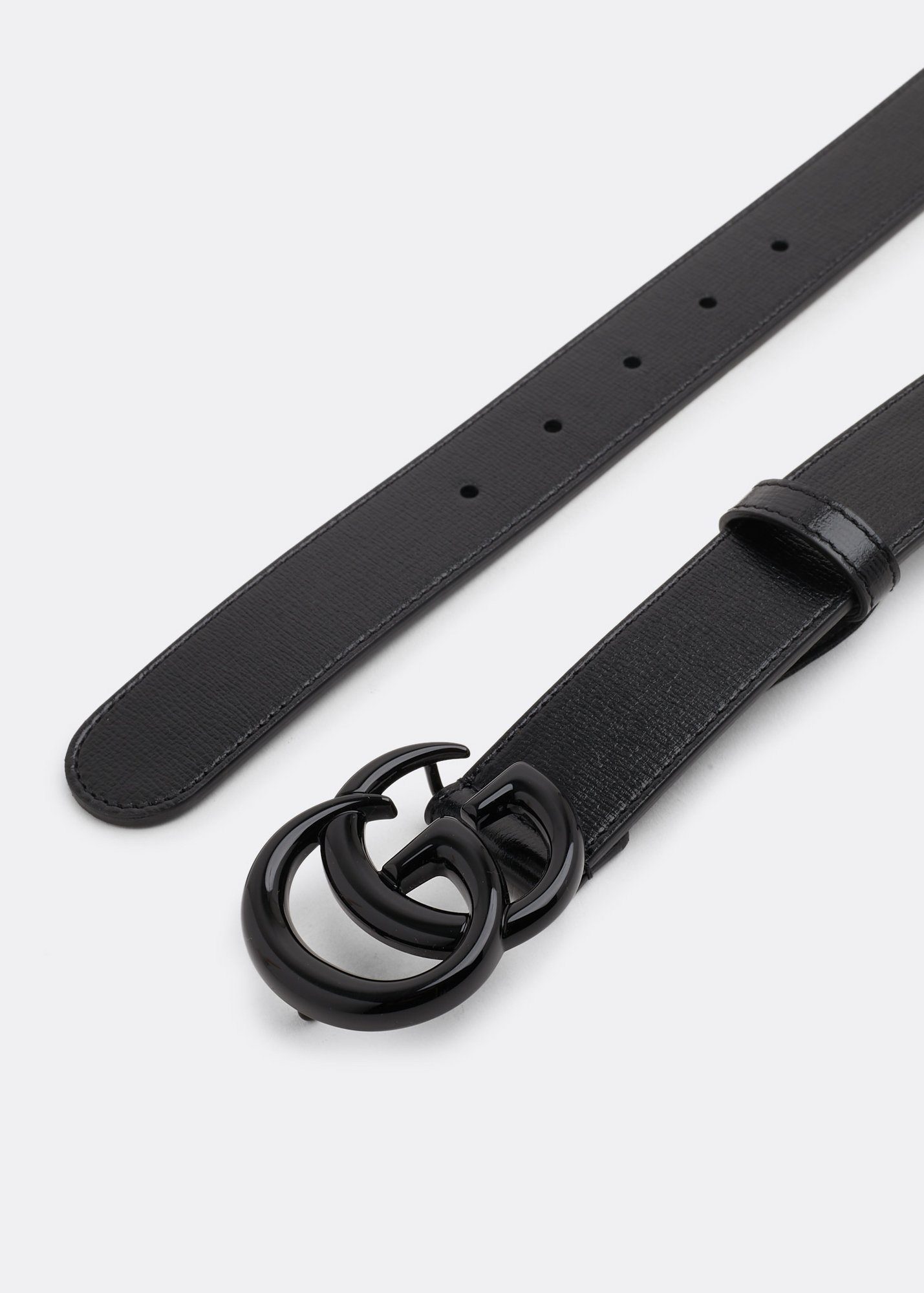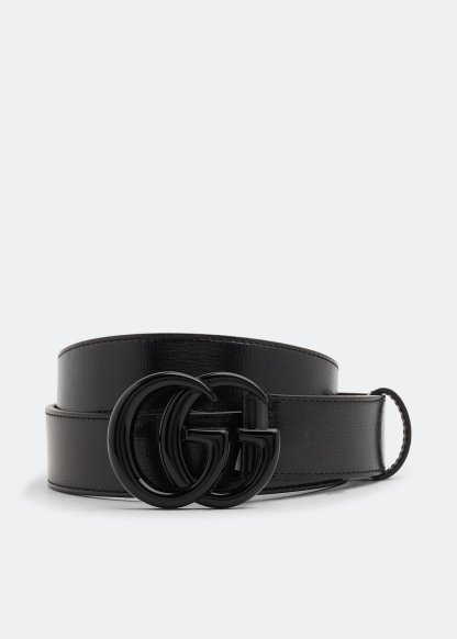 Set on smooth black leather, this GG Marmont thin belt features Gucci's Double G in tonal hardware. Perfect for wearing with your favourite denim and Gucci sneakers. Belt width measures approximately 2.5cm.