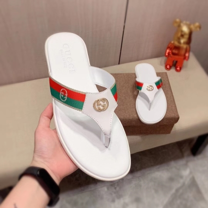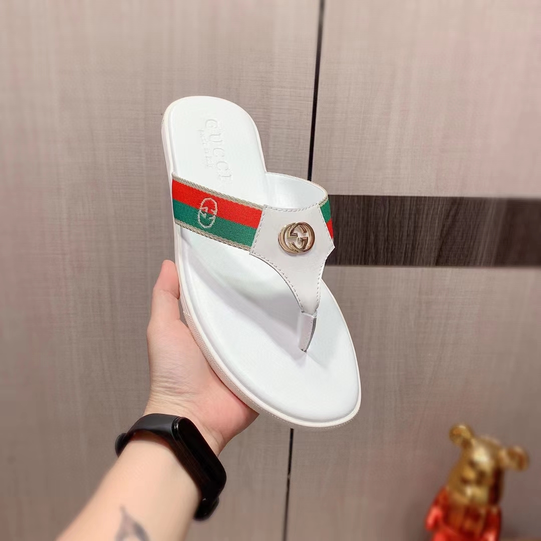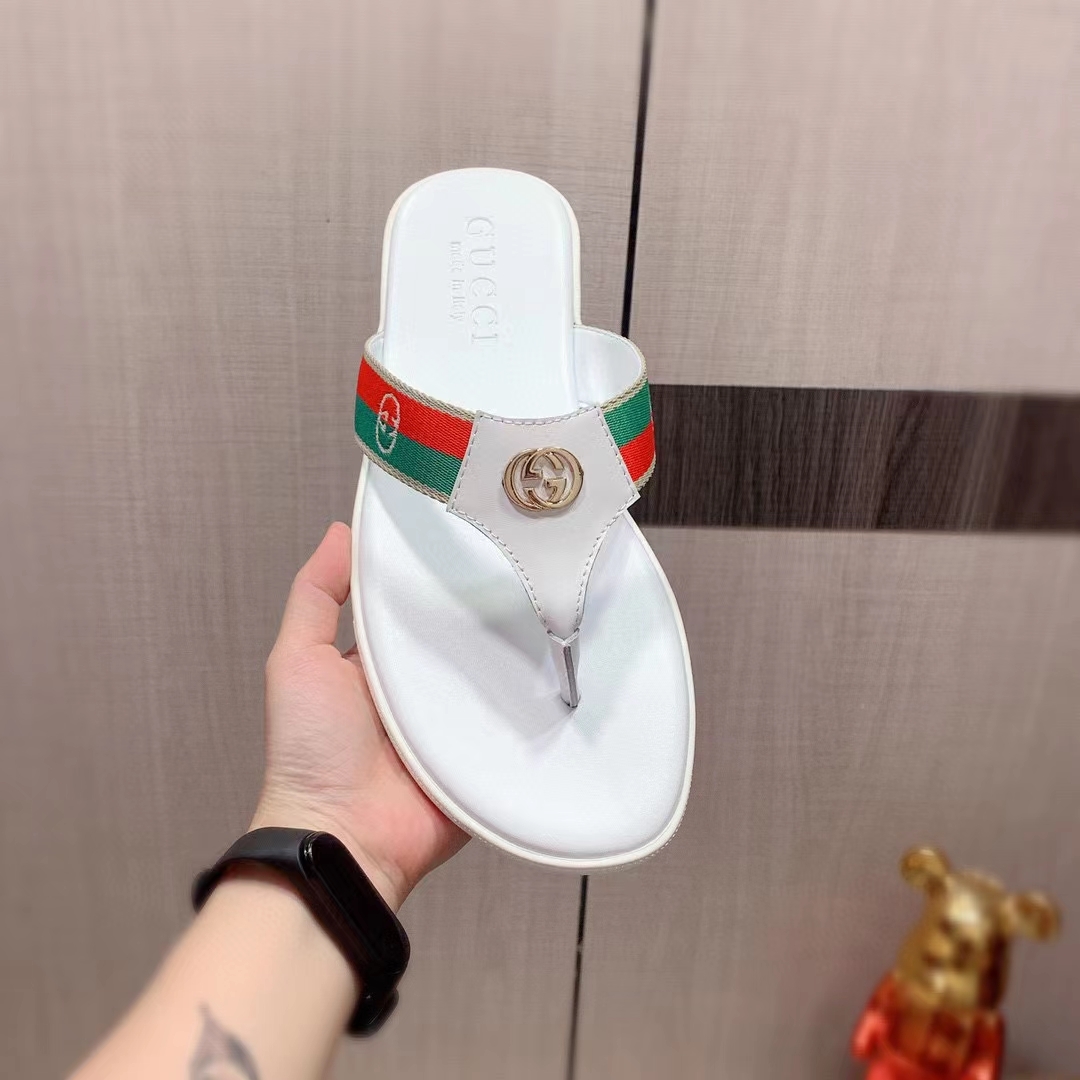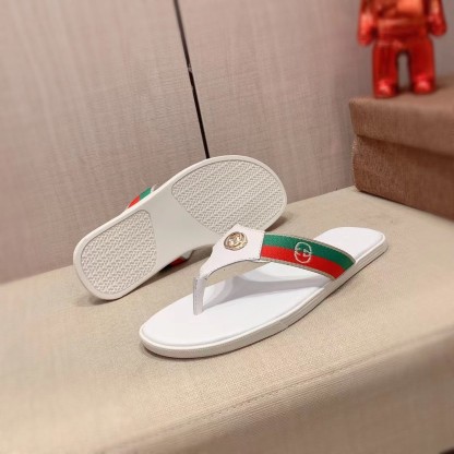 Product Details The brand code defines the traditional flip-flop sandal, with green and red webbing on the straps contrasting with the interlocking G detail in a contrasting metallic tone.