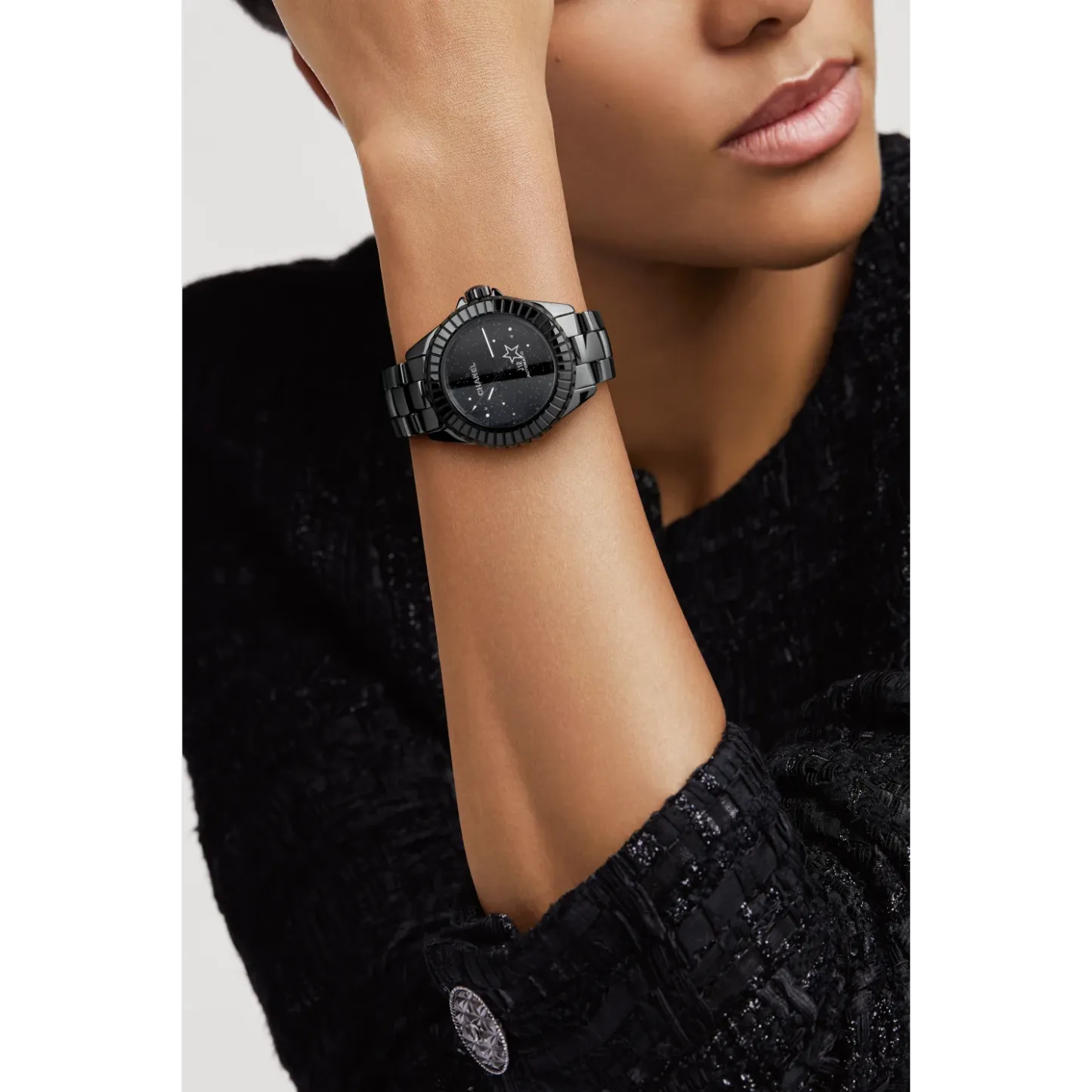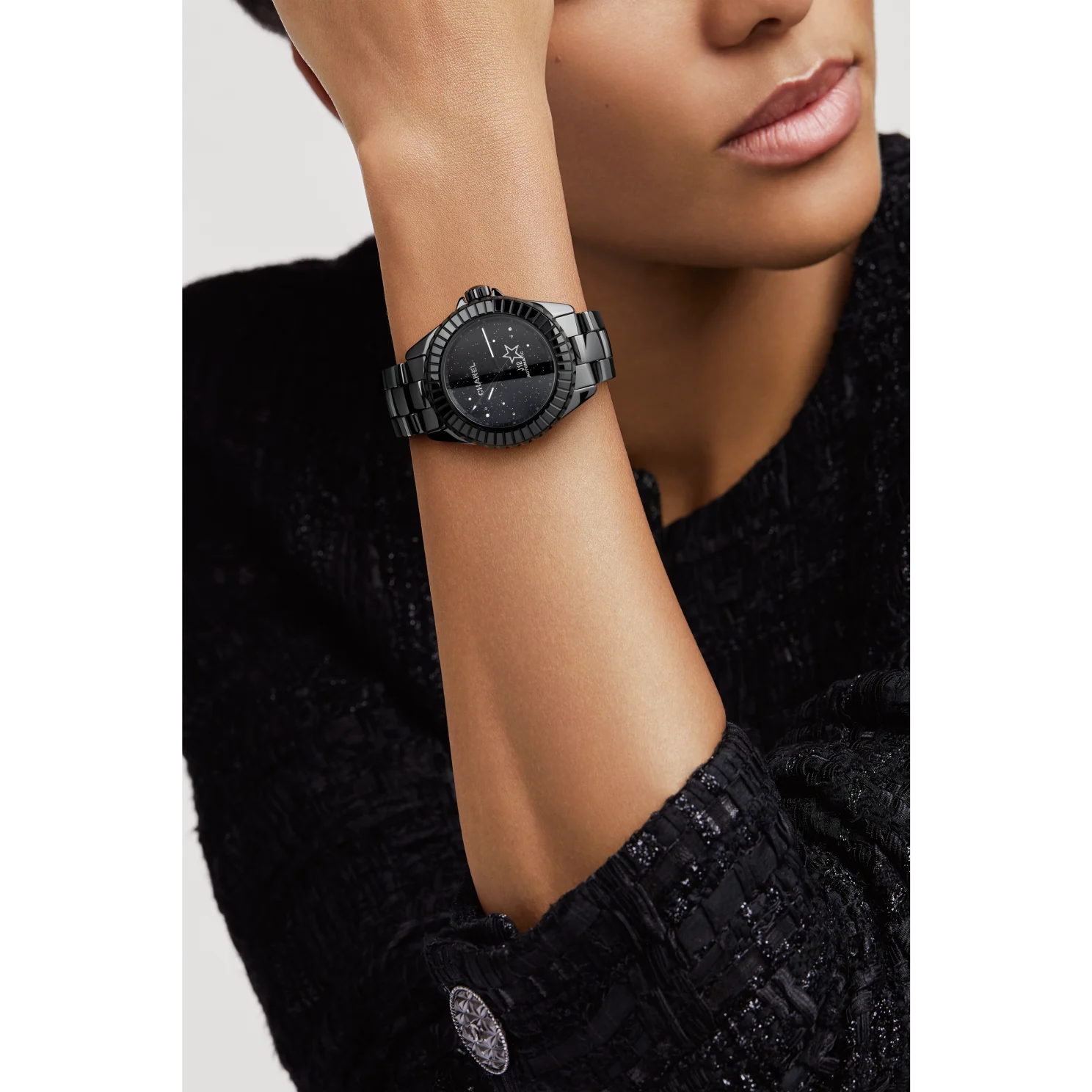 Black highly resistant ceramic bracelet and steel triple-folding buckle