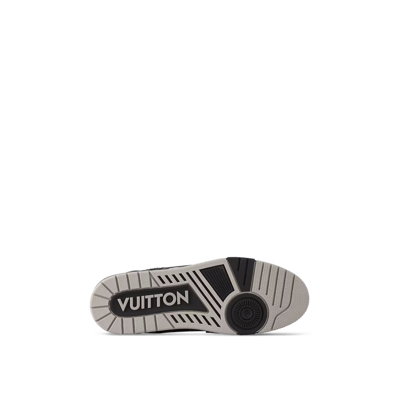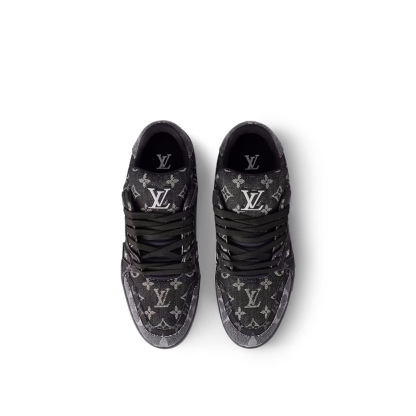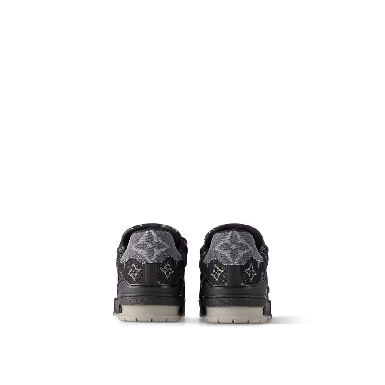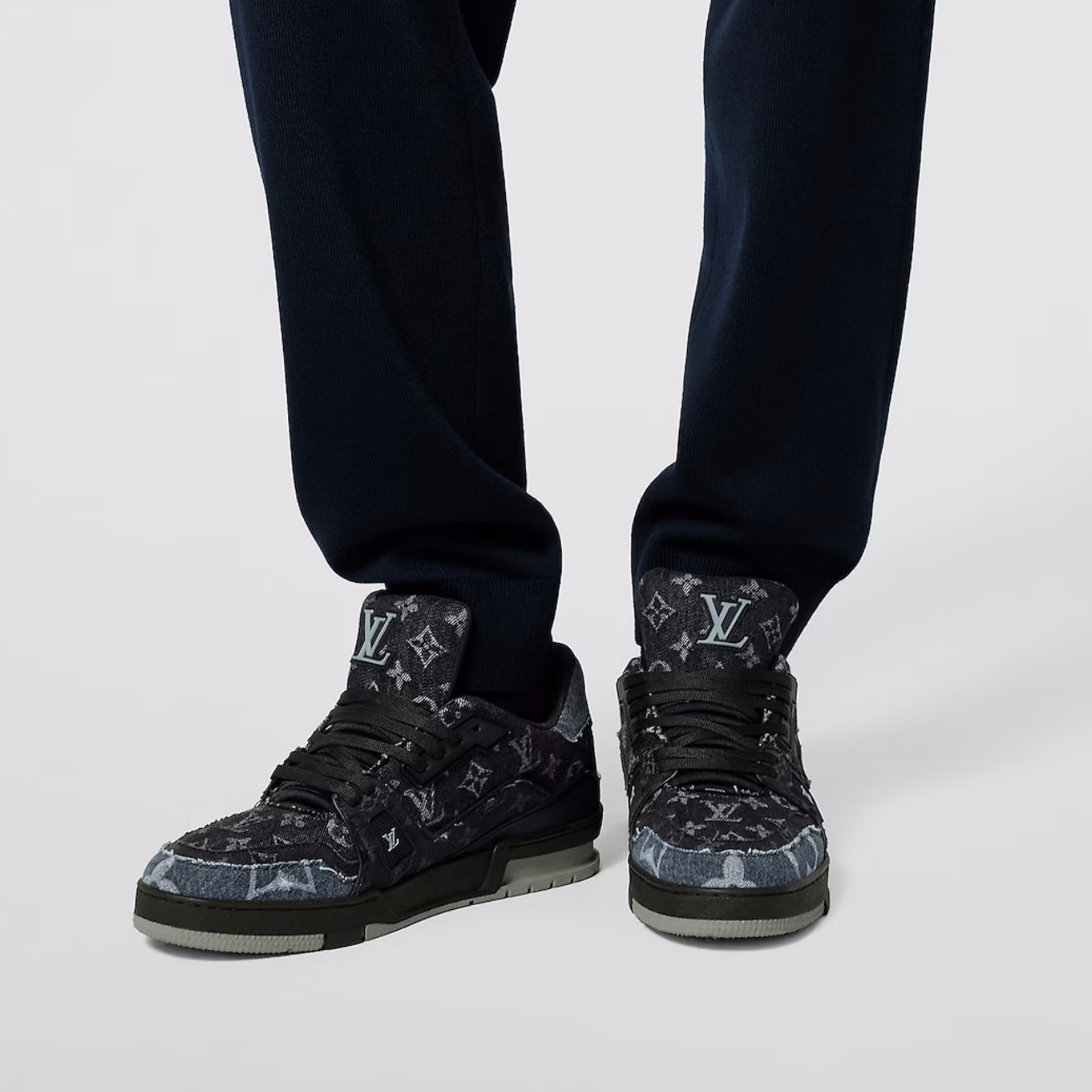 This version of the LV Trainer sneaker comes in a patchwork of Monogram denim with a refined play on color and scale. This iconic style, which was originally designed by Virgil Abloh, references vintage basketball sneakers. Its elaborately constructed upper, which takes Louis Vuitton artisans seven hours to stitch, is complemented by a bicolor rubber outsole.
