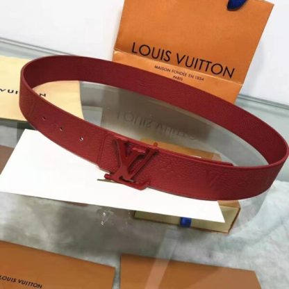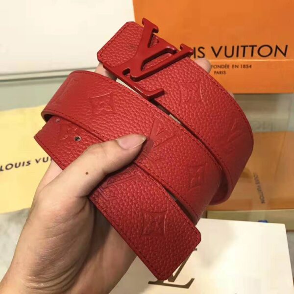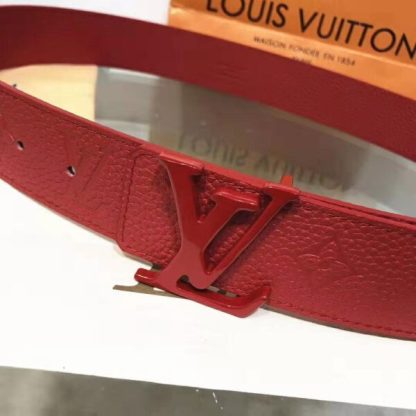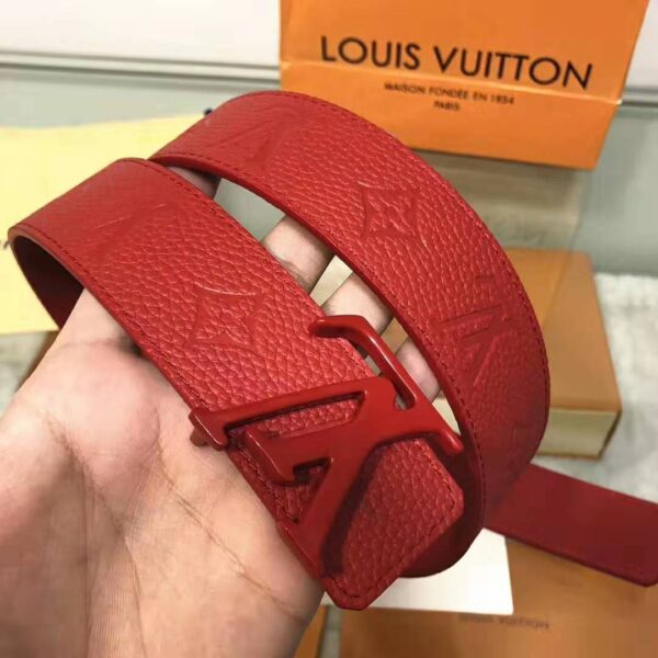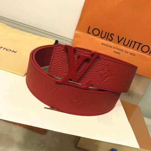 Louis Vuitton LV Unisex Ceinture LV Shape 40mm Belt in Lanière En Cuir Taurillon Embossé Red