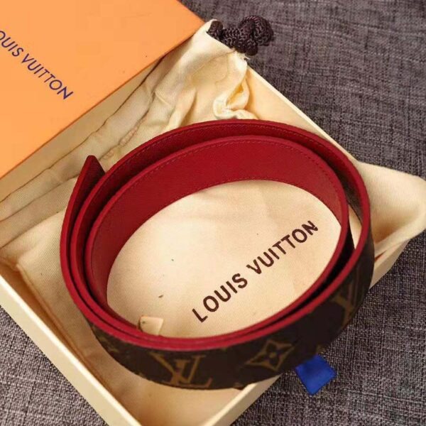 A timeless branded model that offers two belts in one thanks to its reversible option. The iconic LV initials buckle can be associated with Monogram canvas for a more casual look, or with bright red leather for a highly colored silhouette.