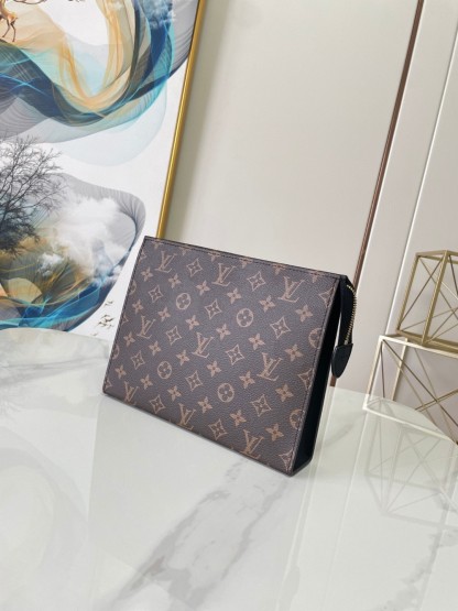The Poche Toilette offers a convenient, stylish way to carry personal necessities. Crafted in Louis Vuitton’s timeless Monogram canvas and fine black cowhide with a gold-finish zipper, it emanates quality and sophistication. More than just a toiletry bag, its ingenious design incorporates four card slots plus a patch pocket for papers. Ideal for today’s mobile lifestyles.
