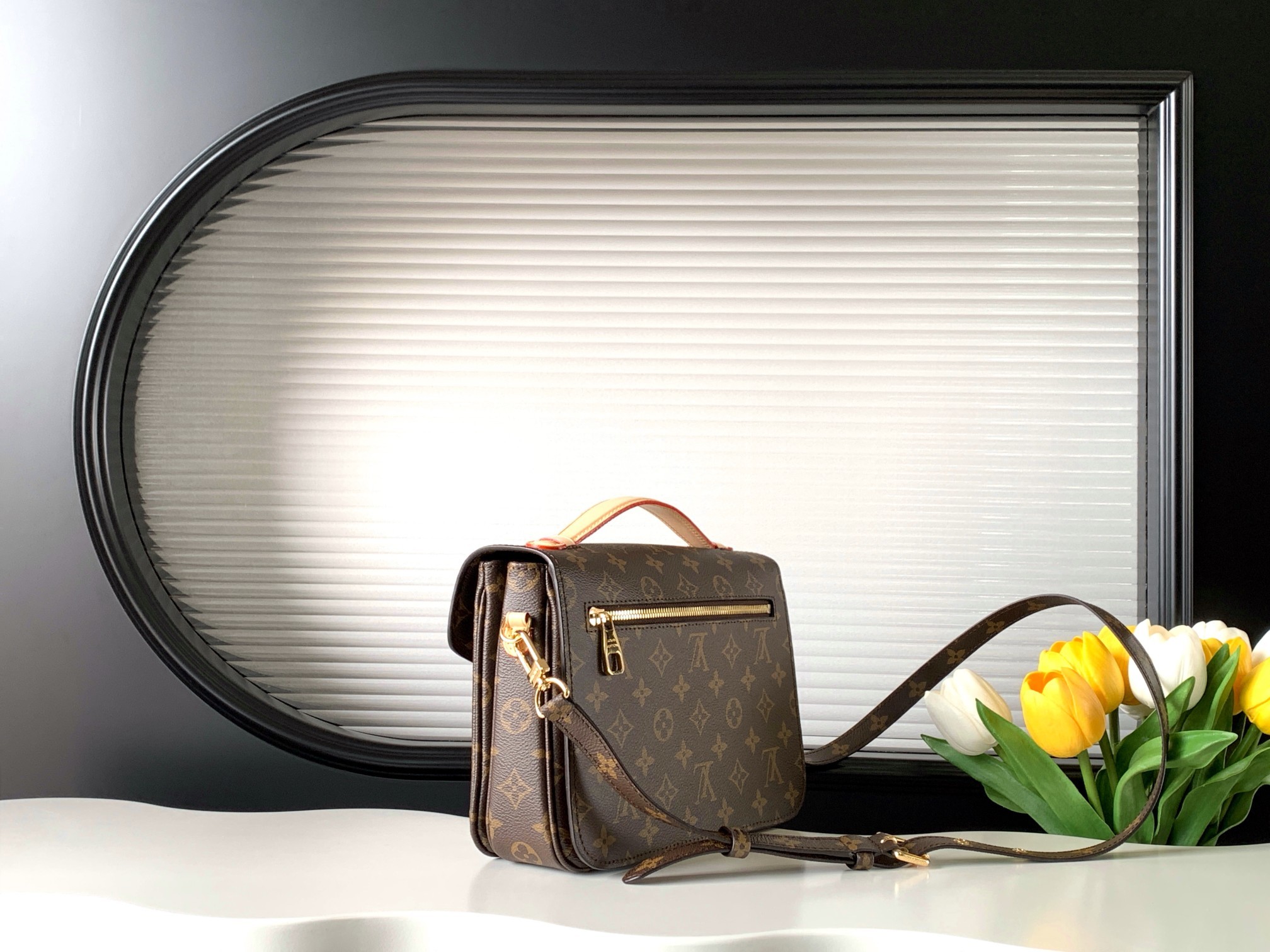 With its on-trend satchel silhouette, the Pochette Métis bag has become an object of fashion desire. This compact, go-everywhere model in the House’s Monogram canvas features a distinctive S-lock closure with a polished gold-tone finish. Versatile and unexpectedly roomy, it is fitted with a chic top handle and a long detachable strap for shoulder or cross-body wear.
