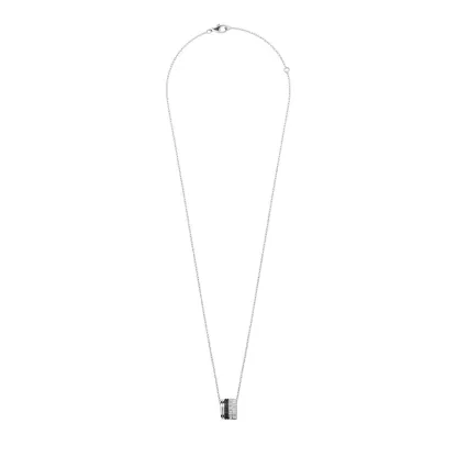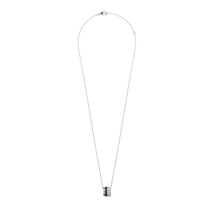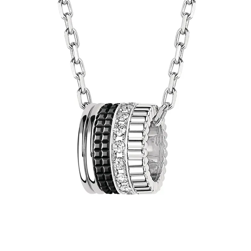Godron, Clou de Paris, Grosgrain and a line of diamonds—the architectural lines of the Quatre collection create a large two-tone pendant with a graphic design.