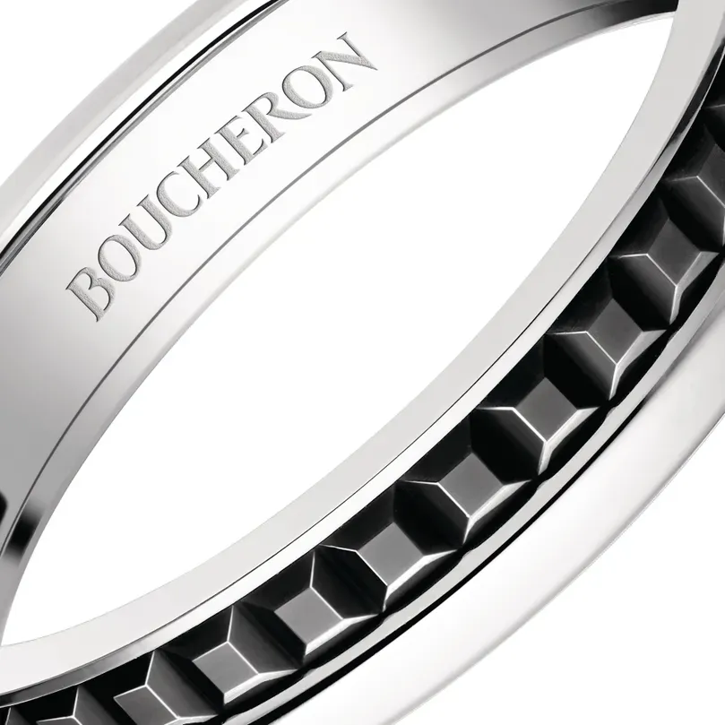When the gadroon meets the clou de Paris, it can only be spectacular: The radiance of black PVD highlights the sculpture of materials and optimally reflects the light. Finesse, boldness, and contrast: the Quatre Black Edition is the perfect companion for a bold or understated outfit. With or without diamonds? It’s entirely up to you.