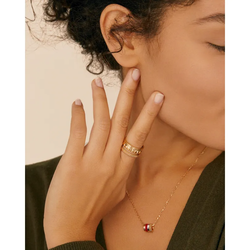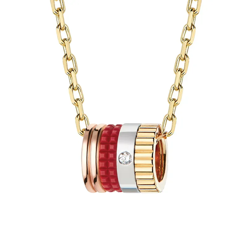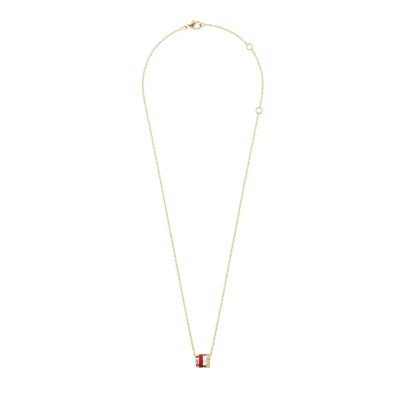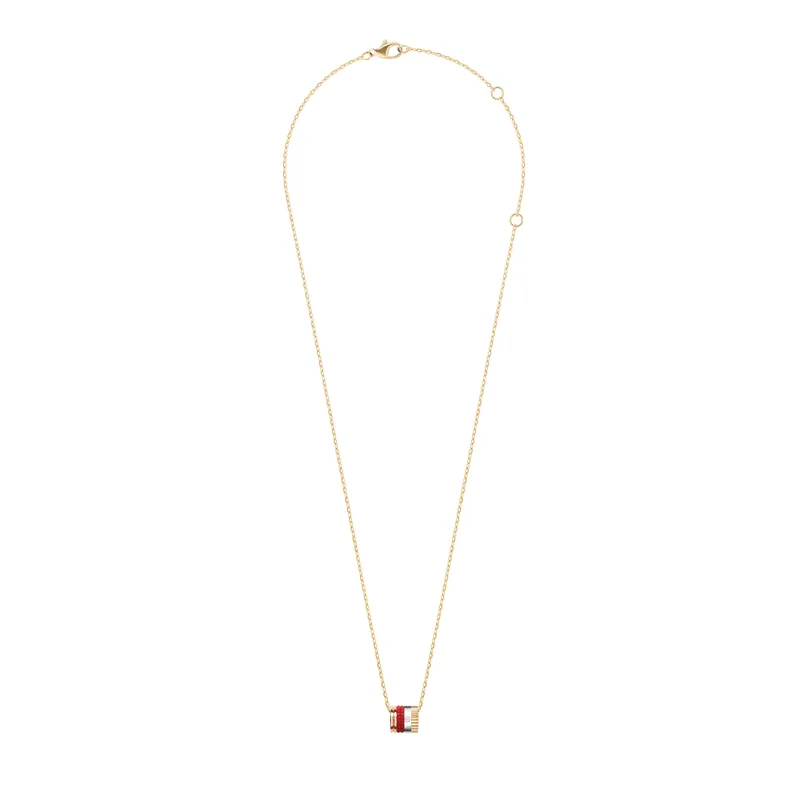 Did you choose the Quatre Red Edition mini ring pendant to coordinate with your favorite red lipstick? It will brighten your daily life in any season with its diamond, three colors of gold, and bold red ceramic ring.