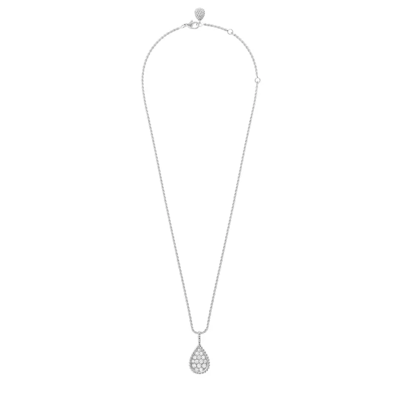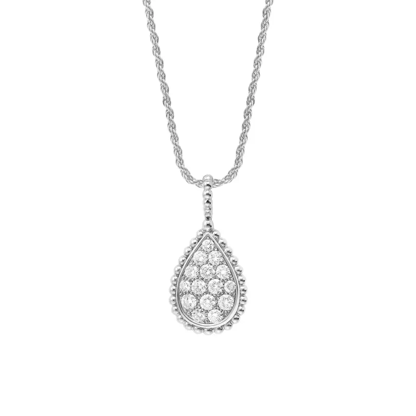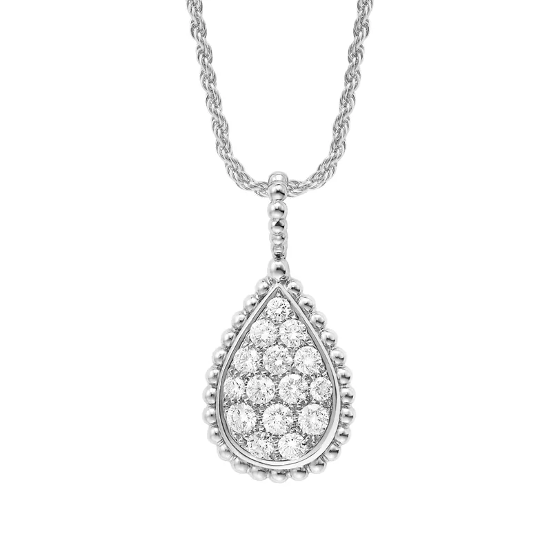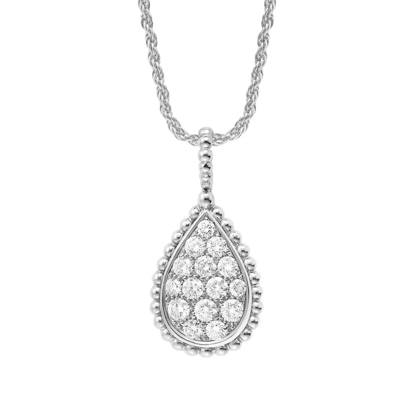 Created in 1968, Serpent Boheme went through the years and became one of the most iconic collection of the Maison. On its twisted chain, the head of the snake is symbolized by a drop set with diamonds and crowned with gold beads. The honeycomb design allows the light to pass through, giving the stones even more sparkle. In white gold, this long necklace embodies the impertinence of the Maison Boucheron.