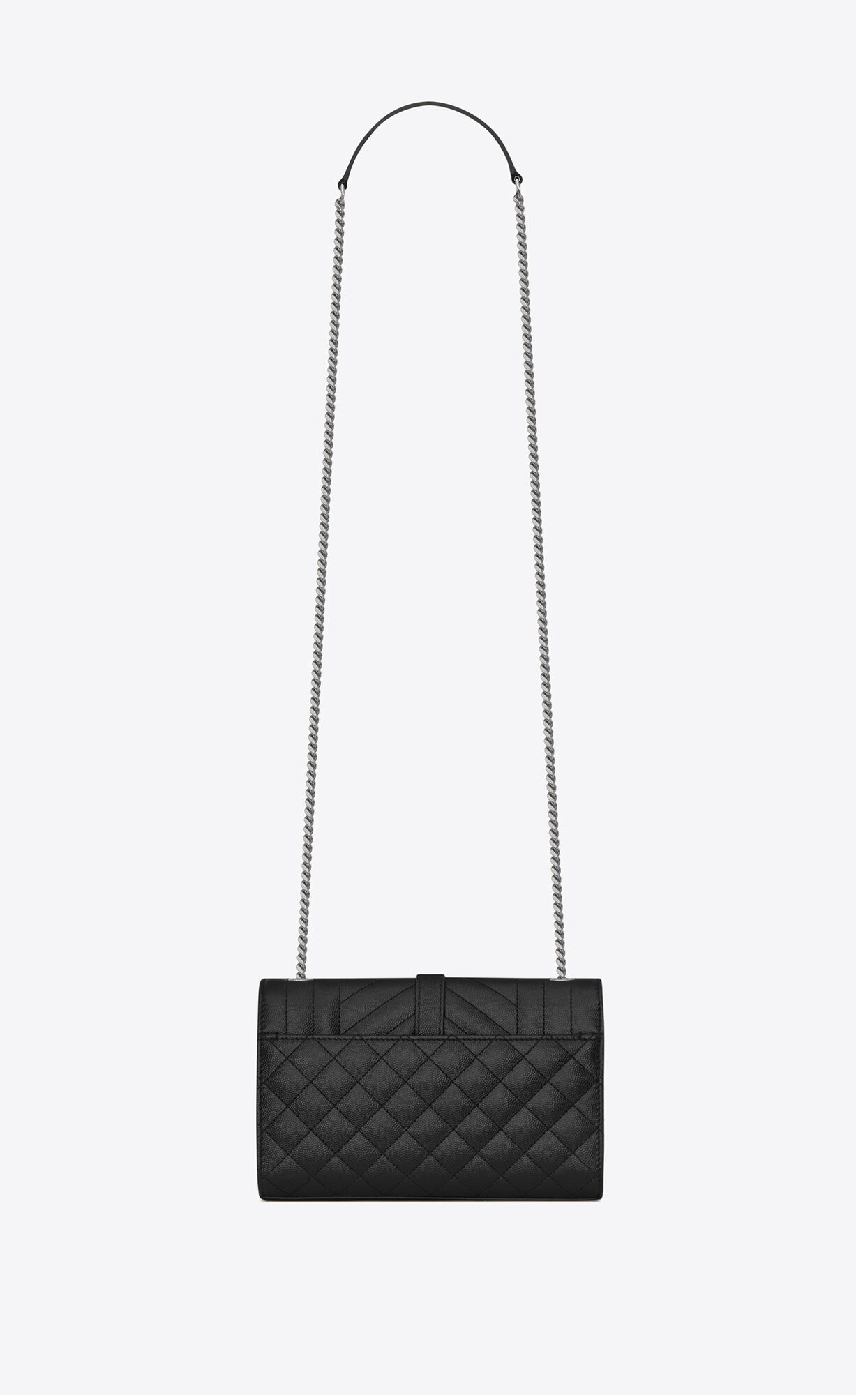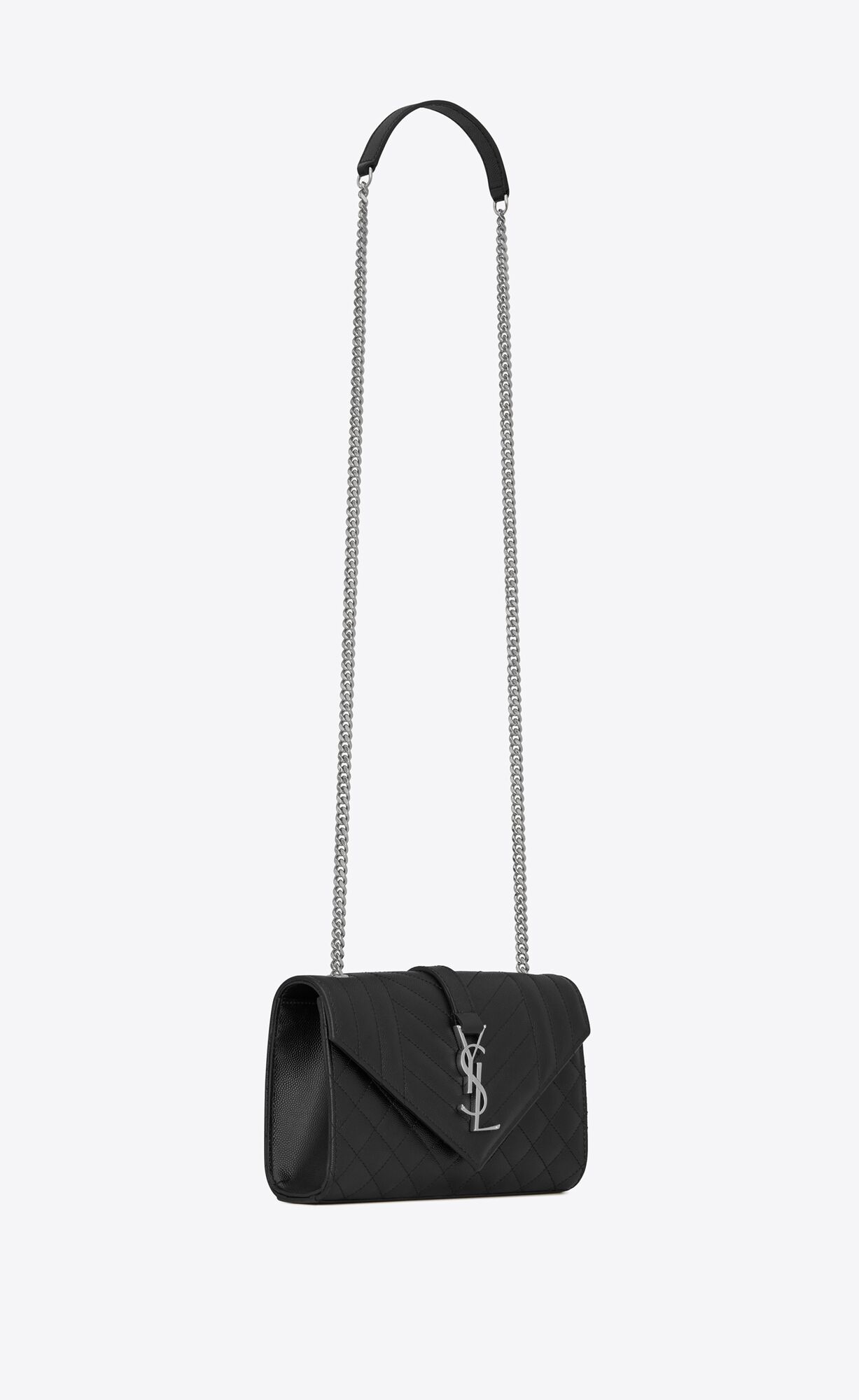ENVELOPE FLAP BAG IN GRAIN DE POUDRE EMBOSSED LEATHER, FEATURING CHEVRON AND DIAMOND QUILT OVERSTITCHING.