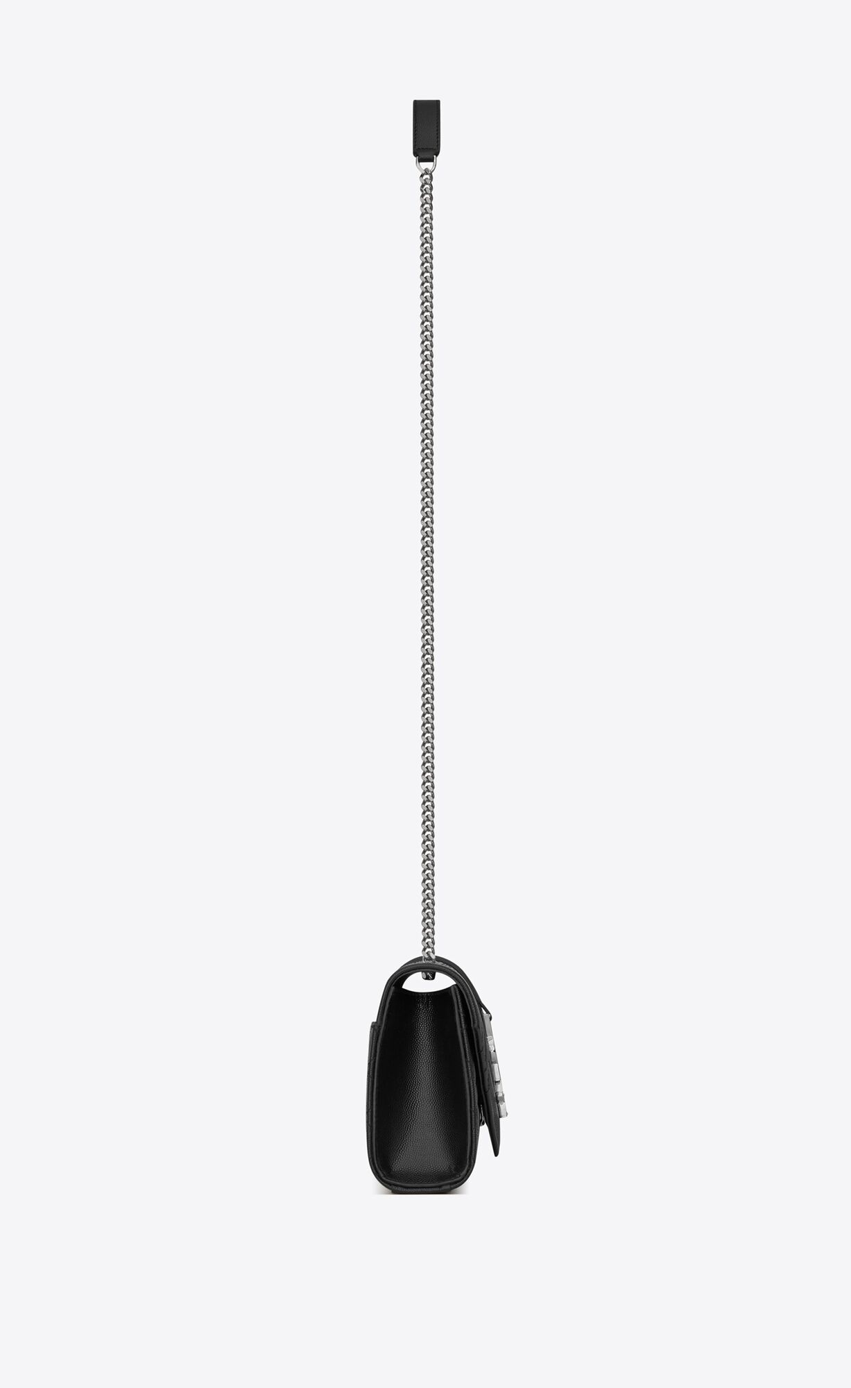 LIGHT, WITH A LONG CHAIN SHOULDER STRAP TO GO FROM DAY TO NIGHT.
