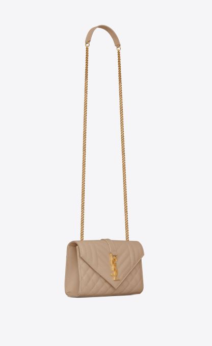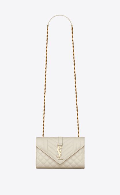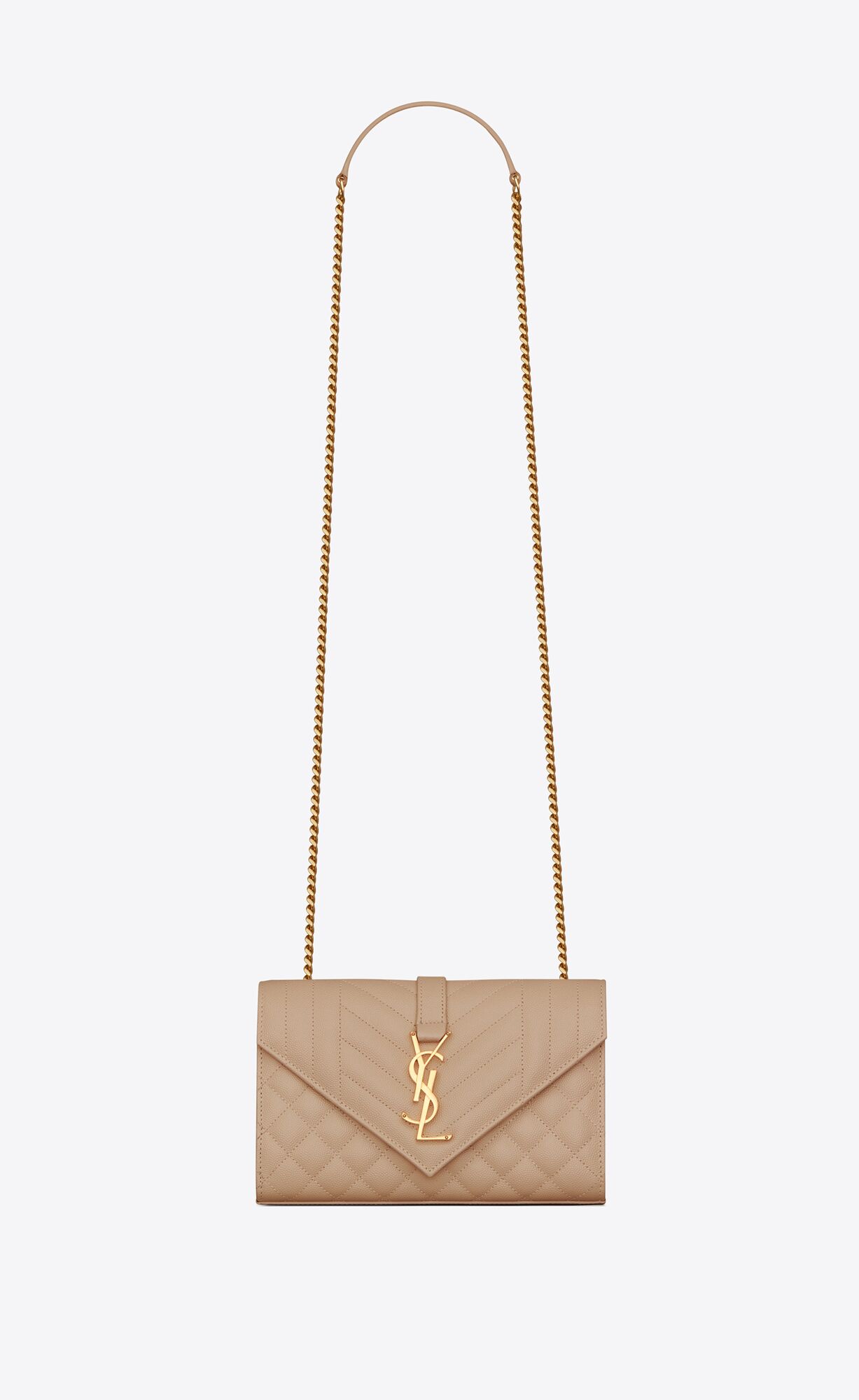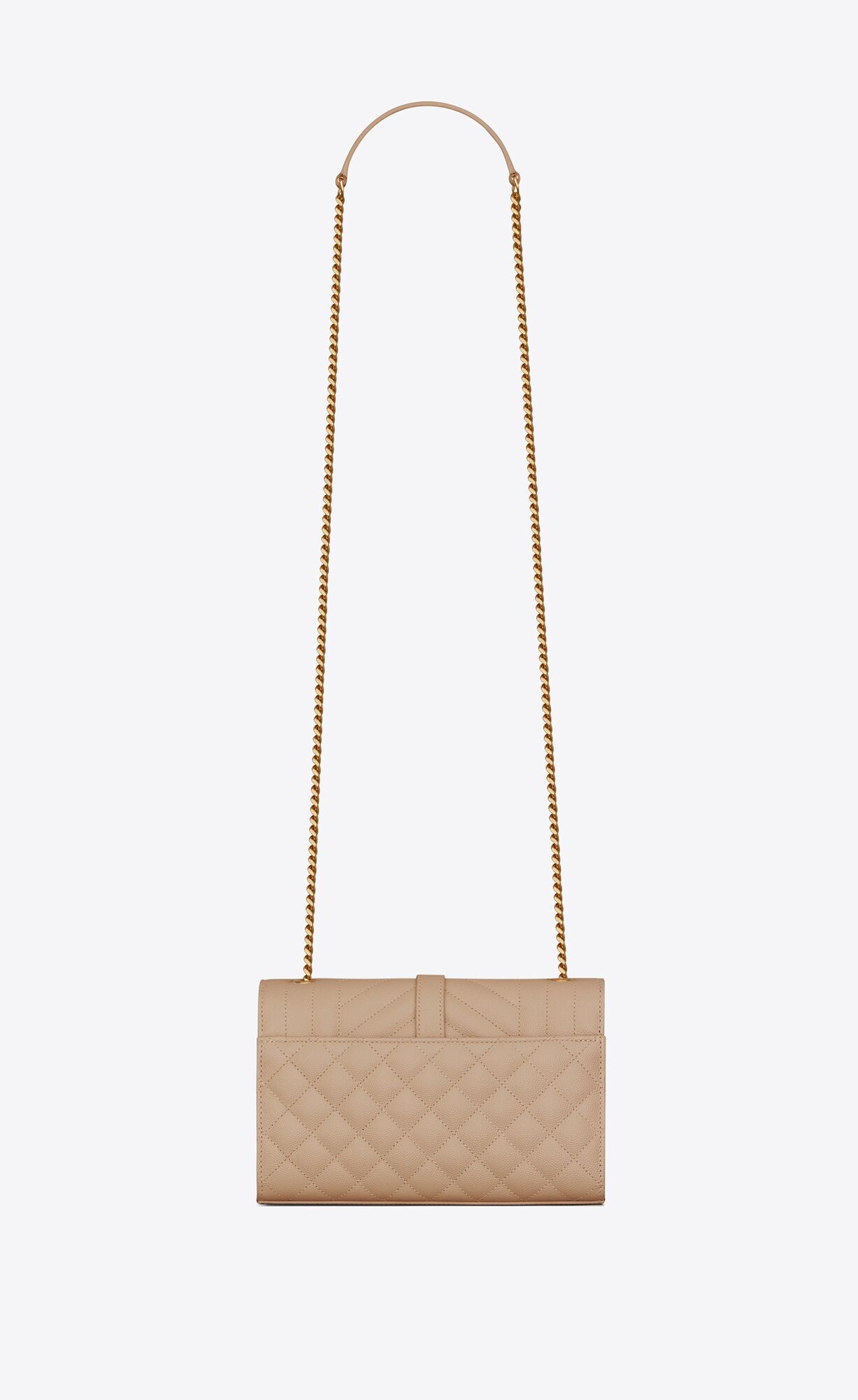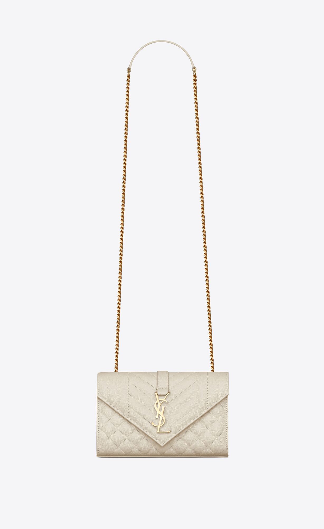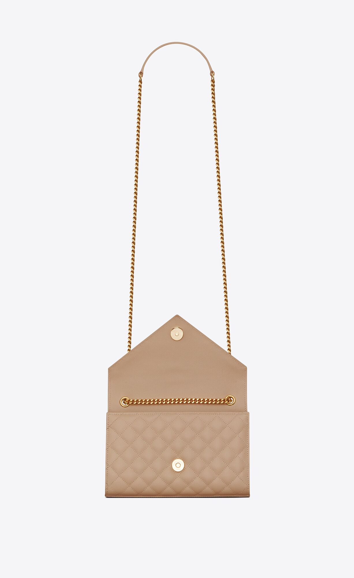 ENVELOPE FLAP BAG IN GRAIN DE POUDRE EMBOSSED LEATHER, FEATURING CHEVRON AND DIAMOND QUILT OVERSTITCHING.