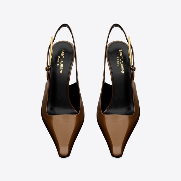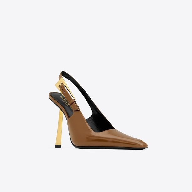 SLINGBACK PUMPS WITH A SQUARE POINTED TOE AND GOLD-PLATED GEOMETRIC STILETTO HEEL, FEATURING A SQUARE-CUT VAMP AND ELASTICIZED SLINGBACK STRAP.