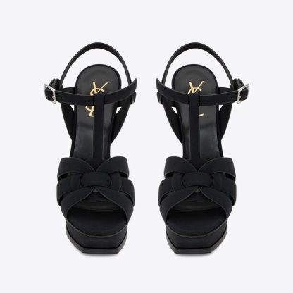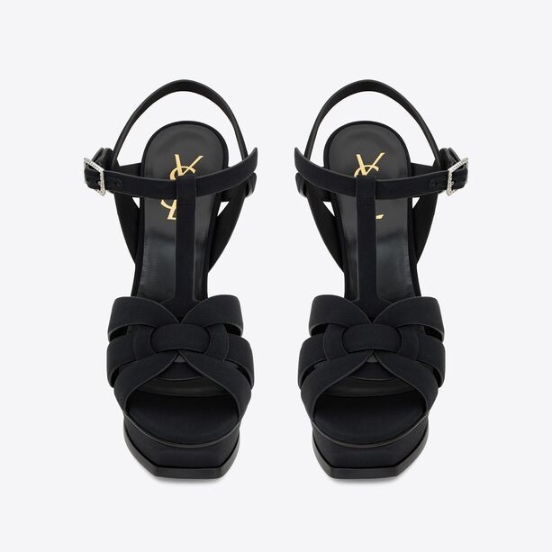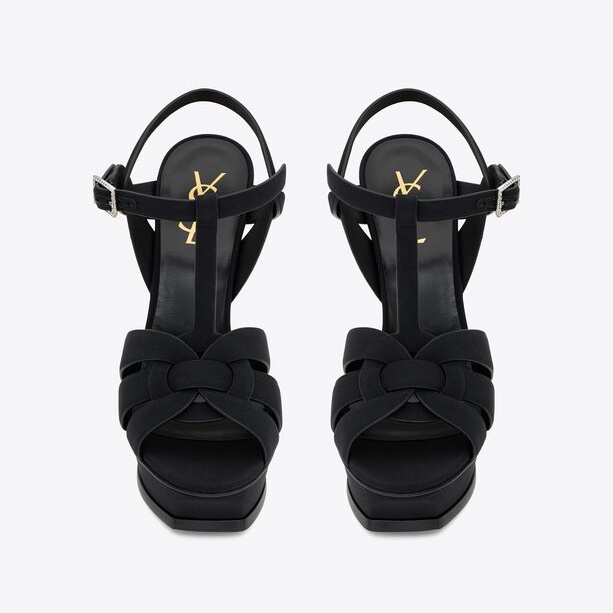 YSL TRIBUTE PLATFORM SANDALS IN CREPE DE CHINE